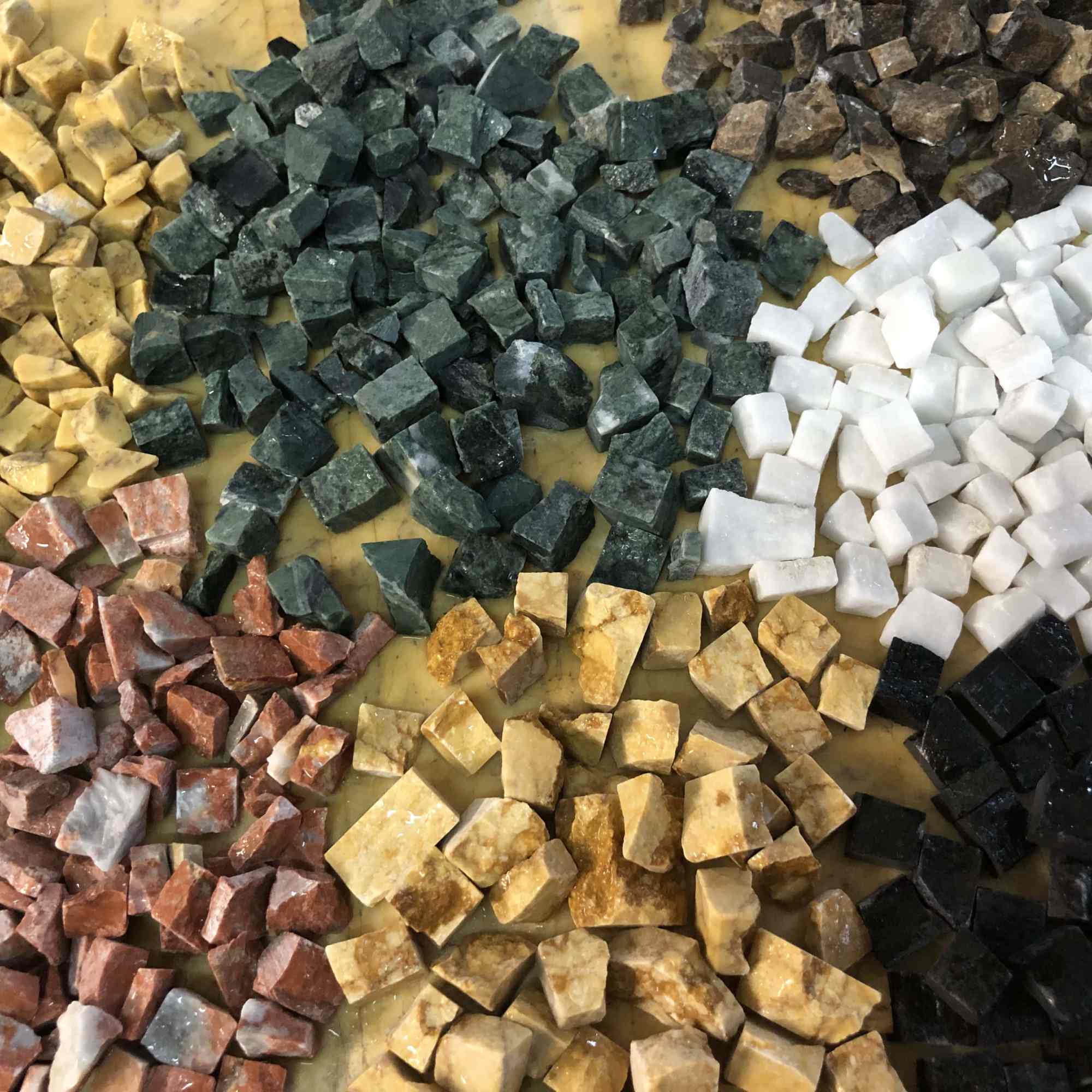 Peinture pour l’éternité de part l’inaltérabilité des matériaux utilisés. La variété et la richesse de leurs textures et couleurs permettent la création de mosaïques de tous styles.